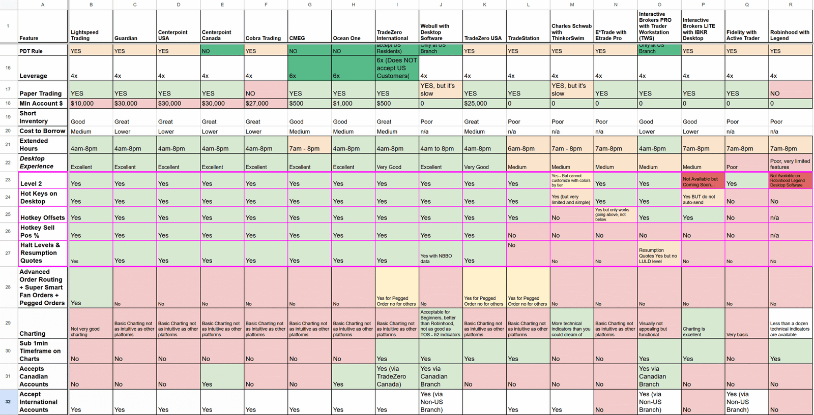 - 미국에 거주하며 actively 주식거래를 하는 사람: Lightspeed -오더실행 속도가 빠르고 다양한 hot key 기능을 지원받을수 있음, 다만 membership 이 $130/ month 로 비싼편.